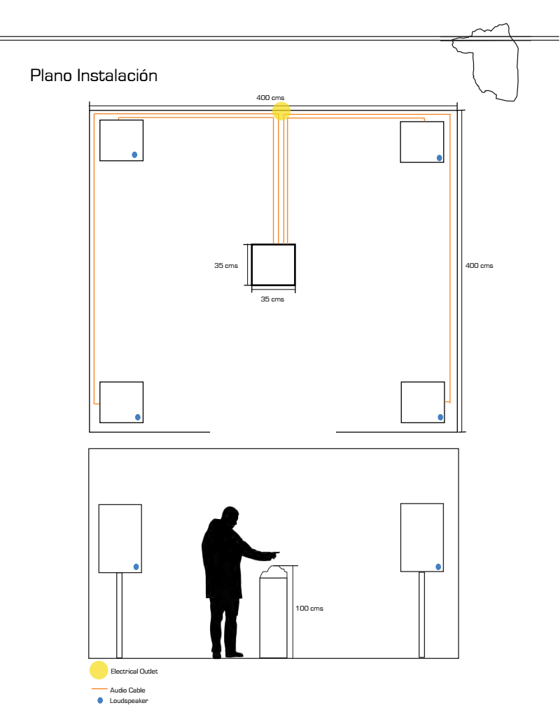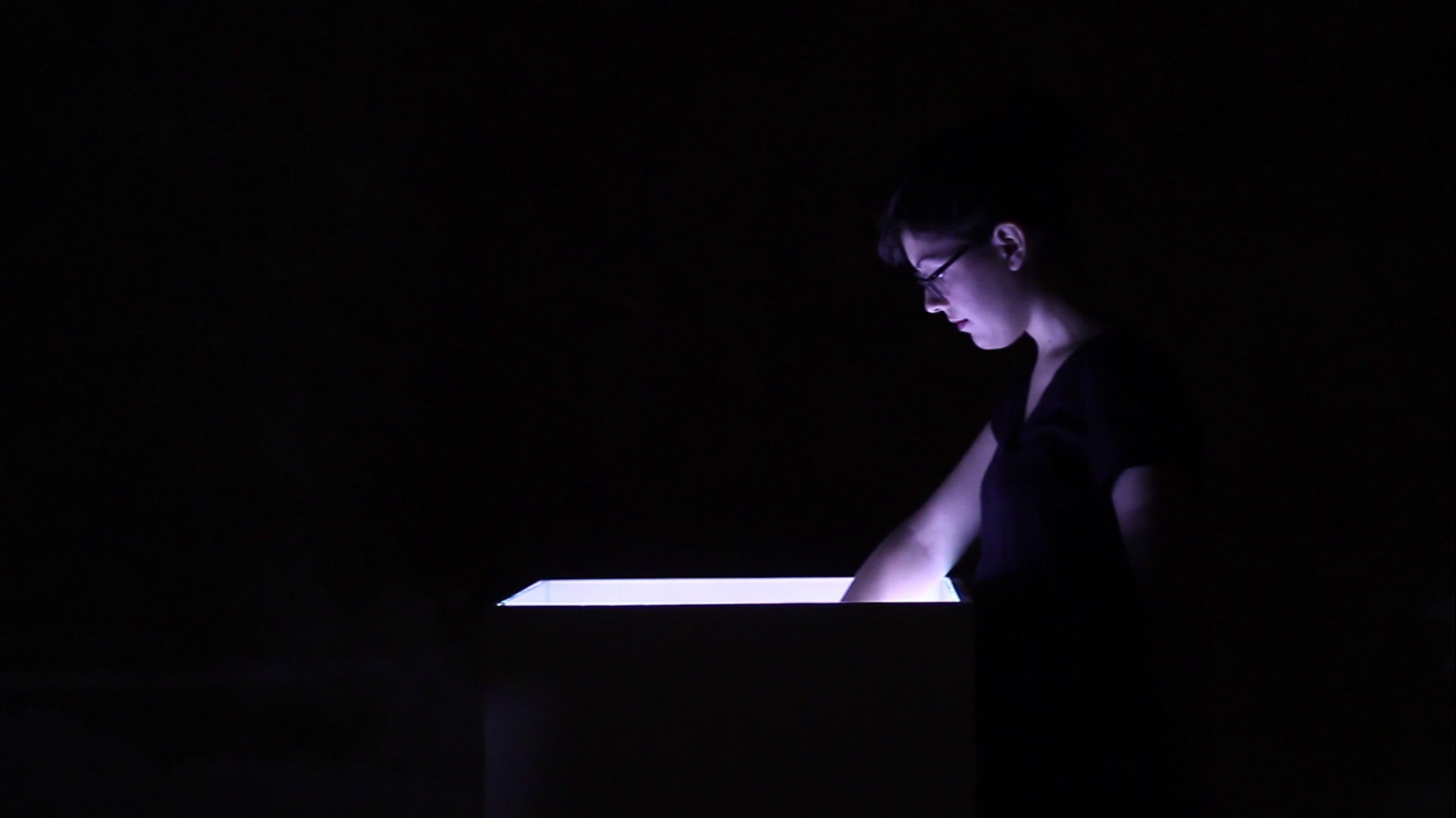 This iceberg is made up of two parts, one audible and other tactile. The tactile part is a water cube, the aural part is white noise and both are connected through a computer vision algorithm. It invites the public to sink their hand in the cube and shake it, the action is recorded and tracked in real time by the computer vision system of the work and the information obtained can move the sound in space in the same way water does, a fragmented sound in hundred equal parts that allows to sonorize the movement of the particles of the water cube, so the public can feel the shape of water through the skin and ear, accessing information objects have hidden into them.